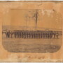 Outstanding albumen believed to be “C” Company of the 113th Ohio Infantry. This view includes the entire company including the officers and band members. The men standing shoulder to shoulder armed with their muskets and sporting all manner of dress and head gear. In Dec, 1862, the regiment was ordered to Louisville, where danger was expected from the Morgan raid, and, although the organization was incomplete, in 2 hours it was on its way, finely equipped. After a few months spent in Kentucky it was ordered to Tennessee and in Sept., 1863, after a wearisome and trying march over the mountains, the regiment bore a distinguished part in the sanguinary battle of Chickamauga, being brought into action in the afternoon of the second day at the most critical point and moment. It was a bloody baptism for the regiment, as its loss was 138 officers and men out of 382. It moved to the relief of Knoxville and endured all the sufferings and trials of the campaign. Then the monotony of the winter was broken only by an occasional reconnaissance, until the regiment moved on the Atlanta campaign. It was in action at Resaca, Dallas and Kennesaw mountain. In the last named engagement the regiment formed the first line of assault and consequently lost heavily, the casualties being 10 officers and 153 men. In the numerous engagements around Atlanta the regiment was not actively concerned except at Peachtree creek, though it was always present and almost always exposed to the fire of the sharpshooters. It joined Sherman in his “march to the sea ;” participated in the siege of Savannah ; shared in all the labors and glories of the campaign in the Carolinas ; was severely engaged at Bentonville, fighting hand-to-hand and during the heaviest of the battle leaping the breastworks to repel assaults from either direction. This was its last battle and it was mustered out on July 6, 1865. This example bears a period ink inscription across the front bottom of “James G. Topping”. James would muster with “C” Company as a sergeant in 1862 and would serve through the entire enlistment of the regiment. All of these men are individually number on the albumen itself, unfortunately the id which accompanied the image and identified each man has long since been lost. This one is matted and ready to be framed. Measures 10″ x 8 1/4″. Super nice albumen view!