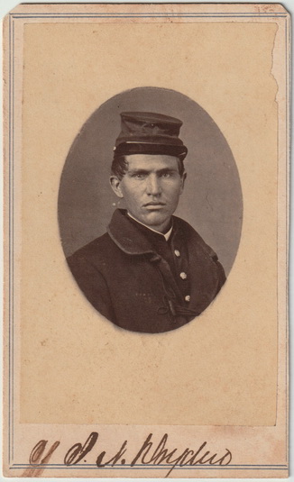 Wonderful carte view identified as Captain Isaac N. Dryden of the 24th Ohio Infantry. Isaac would muster with the regiment in June of 1861 and was immediately appointed as one of Company D’s eight corporals. Soon after, he was promoted to sergeant before the 24th Ohio saw its first action at Cheat Mountain, (West) Virginia, in September 1861. He must have performed capably under fire, because in mid-November, he was selected to serve as Company G’s second lieutenant. As Union forces pushed south into northern Mississippi, the 24th Ohio was one of the first regiments to enter Corinth on May 30th 1862, after a month-long siege. The following month, Isaac would be promoted to 1st lieutenant of “B” Company. Following the Battle of Stones River, the regiment had lost ninety-eight men, including regimental commander Colonel Fred Jones and three other officers. Dryden took temporary command of Company B. The 24th Ohio’s temporary commander, Captain Armstead Cockerill, composed an after action report giving “great praise” to Lieutenant Dryden and seven of his surviving fellow officers “for gallant and efficient services rendered during the entire engagement, displaying that coolness and bravery so necessary in such emergencies.”. A few weeks later, Dryden was again singled out for commendation by his brigade commander, Colonel William Grose. When Grose’s brigade encountered approximately 1,000 Confederate cavalrymen near Woodbury, Tennessee, the Federals caused the enemy “to retire in confusion, double-quick,” and the colonel reported that he had noticed Lieutenant Dryden and another officer “as prompt and efficient commanders of the front skirmish lines.”. In January 1863, Dryden was promoted to captain, with a date of rank of 31 December 1862, and by March, he had returned to Company D as its commander. In May, he and a first lieutenant requested assignments as field officers “of any Negro troops now raised or to be raised.” The two officers explained: “The sole and single purpose of this application is with a view to serving our country more, in a new and partially untried sphere of duty, and as for our competency and general good character we confidently refer to the endorsements upon this application, relative thereto.”. His service with the United States Colored Troops was endorsed by Lieutenant Colonel Cockerill and eighteen other regimental officers, who suggested that Dryden was “eminently fit” to command any body of troops as a colonel. The officers concluded that Isaac was “a first class drill-master, an excellent disciplinarian, and possesses a happy faculty for instructing raw troops.”. On 9 September 1863, Isaac’s brigade moved up Lookout Mountain, southwest of Chattanooga, driving the enemy away without sustaining any casualties. Colonel Grose’s after action report cited Captain Dryden and his company “for daring bravery in the advance in ascending the mountain and driving and punishing the enemy.”. On 19 September, the armies of Rosecrans and Bragg collided at the Battle of Chickamauga. It was during this fight that Dryden would be severely wounded. The regimental commander’s after action report noted that Captain Dryden had been “borne from the field severely wounded.”. He would be struck in the shoulder by a ball which passed through his lung. Admitted to General Hospital Number Seven, located in the Masonic Academy on College Hill on the southwestern edge of Chattanooga. His condition gradually worsened, and he died on 1 October 1863. The front bottom of this view is signed in period ink. “I. N. Dryden” and is back marked out of Nashville. A wonderful view of this exceptional soldier!