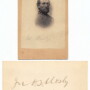 Superb grouping attributed to famed Confederate cavalry leader, John S. Mosby. Very nice vignette portrait of the general in uniform. This example bears a pencil inscription across the front bottom reading, “Col. Mosby’. The reverse is back marked by Anthony with an affixed tax stamp dated May 10, 1866. Accompanying this carte view is a very nice signature from the “Grey Ghost” himself. Ink signature on heavy card stock reading, “Jno. S. Mosby”. Measures 4″ x 2.5″. Exceptionally rare paring from this famed southern cavalryman!