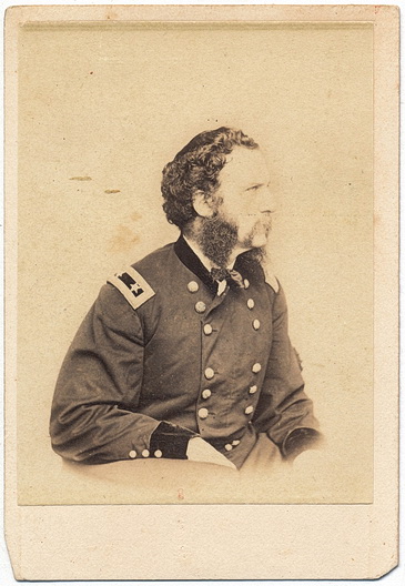 Carte view of Gettysburg hero, General Samuel Crawford. Initially, Crawford served as an assistant surgeon to the Federal Army, serving in various posts in the Southwestern territories and the state of Texas. In 1860, he was reassigned to Fort Moultrie at the Charleston Harbor as served as the surgeon for Fort Sumter as Confederates bombarded the fort. Transferring to the infantry after the fall of Fort Sumter, Crawford accepted a commission as the commander of the 13th U.S. Infantry, and by the spring of 1862, he was named a brigadier general of volunteers. He first served in the Shenandoah Campaign against General Stonewall Jackson, and later fought in the battles at Winchester and Cedar Mountain. Placed in charge of a brigade in the Federal Twelfth Corps, it was with them that he fought at the Battle of Antietam, against General John Bell Hood’s Division in the woods that surrounded the famous Cornfield. Crawford, in the thick of the fight, was given command of a division, minutes later, Crawford received a severe wound in the right thigh. Crawford spent the next several months back with his father in Pennsylvania to recuperate from his Antietam wound. When he returned to the army, he was given a promotion as the new division commander of the veteran Pennsylvania Reserves. At Gettysburg, his division drove the Confederates out of “the valley of Death” beside Little Round Top, with Crawford dramatically seizing the colors and leading from the front. Crawford was recognized as “serving with great bravery and valor” at Gettysburg with his fearless division. Wounded again during the Overland Campaign, Crawford was recognized and brevetted for his courage in the battles of The Wilderness, Spotsylvania, the Siege of Petersburg, and Five Forks and achieved the rank of Major General by the end of the war. General Crawford was present at Appomattox, with his Reserves, when General Lee surrendered, likely making him the only military officer who was present at Fort Sumter, Gettysburg, and Appomattox Court House. Following the war, Crawford was instrumental in the preservation of the Gettysburg Battlefield. He purchased the land below Little Round Top, where he and his division had fought, and donated it to battlefield preservation. For a time, he also served on the preservation board, and for a few years as its director. The preservation of the battlefield after the war is due in large part to his efforts. This is a very nice profile view of the general. No back mark on this one and slightly trimmed at the top.