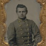 Beautiful ninth plate ambrotype of an unidentified Confederate officer. Dressed in a double breasted grey frock, with second lieutenant rank visible on the collar. The buttons have all been embellished over preventing any identity of their origin. Wonderful clarity to this image. Housed in a half leatherette case with some damage to the case.