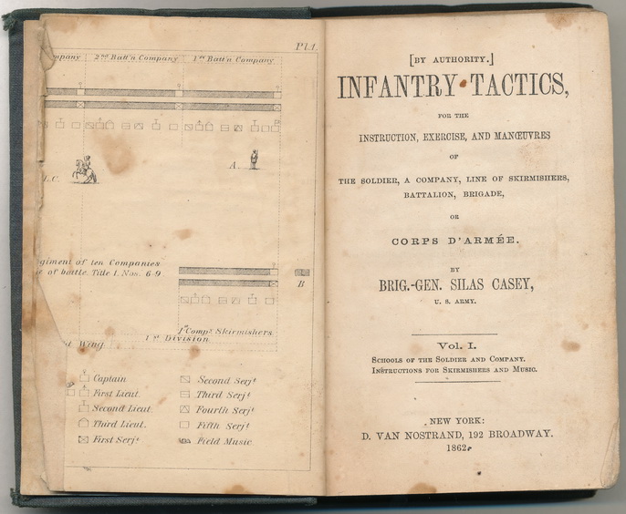 Exceptional Hardee’s Infantry Tactic’s Manual presented to Lieutenant E. B. Jones of the 22nd Indiana Volunteers by MOH recipient Philip Sydney Post of the 59th Illinois Infantry. A very nice period ink inscription inside the front cover reads, “Lieut. E. B. Jones. With compliments of P. Sidney Post”. Jones would muster with the 22nd Indiana Infantry as a sergeant in August, 1862, and would rise through the ranks, achieving the rank of of captain in January, 1865. For Phillip’s part, he would be commissioned into the 59th Illinois Infantry in July of 1861. He would receive promotions to adjutant, major, colonel and finally to brigadier general in March, 1864. Philip would be severely wounded during the Battle of Pea Ridge in 1862, but it was his actions during the fight for Nashville that would earn Post the Medal of Honor. During the battle on December 16, 1864, Colonel Post led his brigade in an attack upon a strong Confederate position at Overton Hill, Tennessee. Despite very heavy grape, canister and musketry fire, plus being wounded, he reached the enemy works and secured their position. He would be brevetted to the rank of brigadier general for his actions there as well as receiving the MOH. His official citation reads, ” Led his brigade in an attack upon a strong position under a terrific fire of grape, canister, and musketry; was struck down by a grapeshot after he had reached the enemy’s works.”. Very nice manual with all the pages intact and the binding nice and solid.