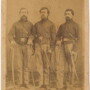 Very nice carte view of 3 members of the 11th New York Cavalry. They are photographed here early in their enlistment and dressed in their newly issued cavalry uniforms. All three men are equipped with M1851 sword belt rigs and displaying their heavy cavalry sabers. Each man is also armed with a holstered revolver. While the men are not identified, they are no doubt members of the 11th New York. Back marked by J. L. Oeffler of Staten Island, where the 11th New York Cavalry was raised. Oeffler held a monopoly on the island as it’s sole photographer and photographed many of the members of the 11th New York. These men have been noted as belonging to “E” company with the man as center identified as Sergeant Walter Tully, however I have no idea how that id was determined.