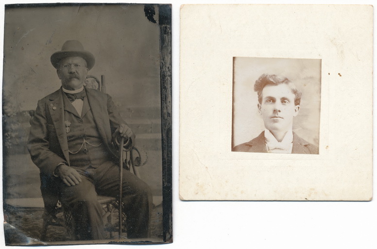 Nice little grouping of photo’s attributed to Private William Harding of the 11th Pennsylvania Cavalry. Included in the grouping is a trimmed down quarter plate tintype of William dressed in his cavalry uniform and sporting a M1840 heavy cavalry saber and Colt M1860 Army revolver tucked into his belt. A cdv of William dressed is civilian clothes is also included as well as a post-war tintype of William taken many years later. Two cabinet cards and a smaller image, presumed to be family members, also accompanies the images. William would muster with “G” Company late in the war at the end of October, 1864. He would fight in the remaining battles of that year in which the regiment participated and take part in the Appomattox Campaign of 1865. He would be mustered out of service in August of that year.